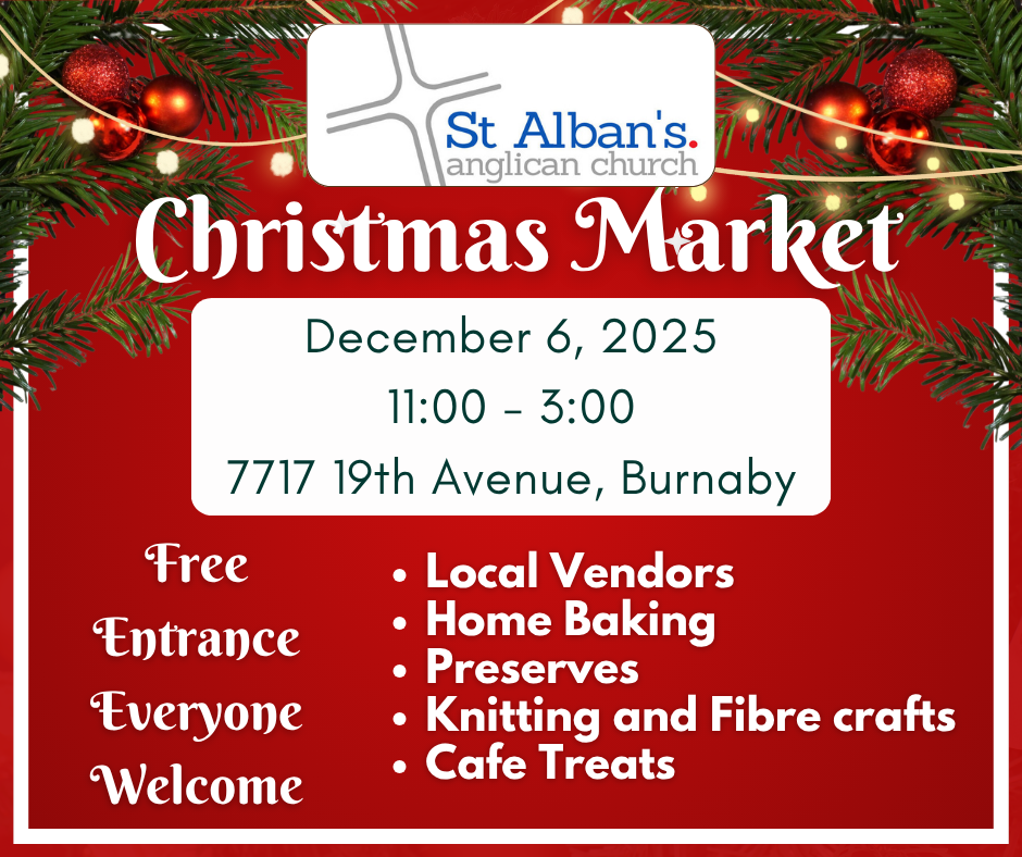 December 6 | 11am to 3pm St. Alban's, Burnaby | 7717 19th Ave, Burnaby