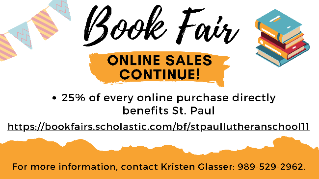 All are invited to be a part of St. Paul in Prayer, a new group beginning here at St. Paul that will be meeting once a week to pray for our school, students, staff, and church. The meetings will be every Thursday at 8:00 a.m. in the Ministry Center. They will be one hour long as we use a specific format for praying using scripture as our guide. Even if you do not have children or grandchildren at St. Paul, you may still come and join us in prayer. If you have any questions, please call or Text Heidi Schultz at 989-450-0975.