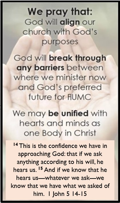 Along with this challenge, I ask you to began a breakthrough prayer initiative and pray with me every time you enter the sanctuary for God's provision of a music leader. As an idea, this can be done by "prayer walking" around the piano.
