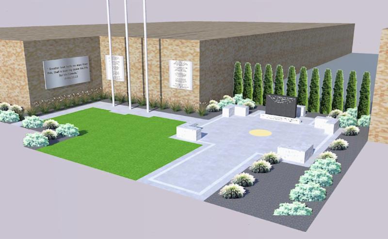 The memorial consists of constructing a small concrete plaza with landscaping, flag poles and a granite monument in the space between the new police building and the renovated Central Fire Station. The memorial is expected to be substantially complete by May 15, in time for Peace Officers Memorial Day.