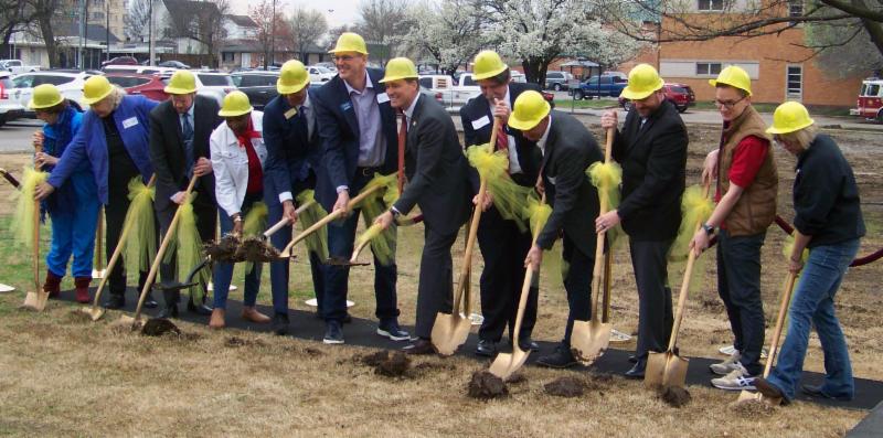 Several dignitaries and community representatives helped break ground during a ceremony held March 29 at the Tower Center at Unity Square site, located between the Bartlesville Community Center and Price Tower.