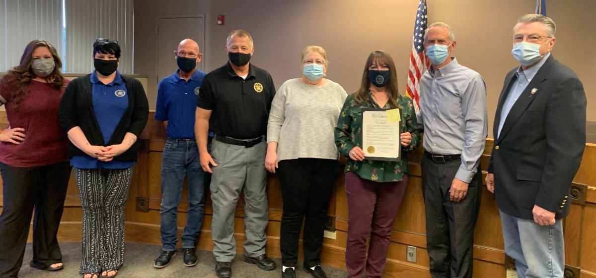 The Bartlesville City Council proclaimed April 11-17 National Public Safety Telecommunicators Week during a council meeting on Monday. From right, Mayor Dale Copeland and Vice Mayor Jim Curd presented the proclamation to Lead E-911 Dispatcher Tammie Long, E-911 Dispatcher Lisa Baker, Special Assistant to the Chief Rick Silver, Lead E-911 Dispatcher Greg Oates, and E-911 Dispatchers Hannah Harbour-Secondine and Ali Pittman. City E-911 dispatchers provide dispatch services to Bartlesville Police Department, Bartlesville Fire Department, Bartlesville Ambulance, Washington County Sheriff's Office, Dewey Police Department, Ramona Police Department and 12 rural fire departments.