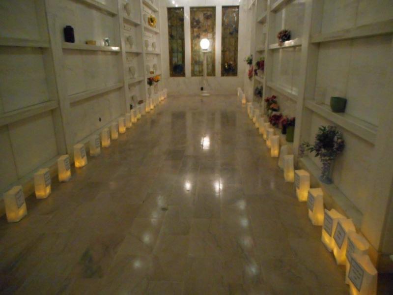 Luminaries, which consist of a small paper sack weighted down with sand and illuminated by an LED light, are placed around the halls of the White Rose Mausoleum. Each luminary has a card attached with the loved one's name and by whom they are being honored. After a service, which includes a speaker, music and reading of the names of those being remembered, guests are invited to take their luminary and place it on the grave of their loved one.