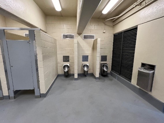 The Pier Restrooms Renovation Project was completed on August 1, 2024. The renovation included interior improvements, resurfacing and sealing of concrete floors, replacement of toilet partitions and urinals, enhanced air circulation, upgraded plumbing, anti-graffiti coating, and replacement of fixtures. All sinks, toilets, urinals, and hand dryers are sensor-activated and low-flow for water and energy efficiency.