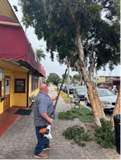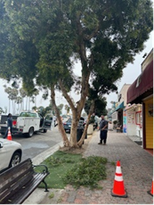 Staff received a work order through the new MySealBeach app from a resident regarding a low hanging tree that was causing obstacles for residents and visitors. Staff trimmed the low hanging tree so that visitors can park and walk safely on the sidewalk. Another tree on 7th Street was also trimmed, so that the street sweeper can better service the area.