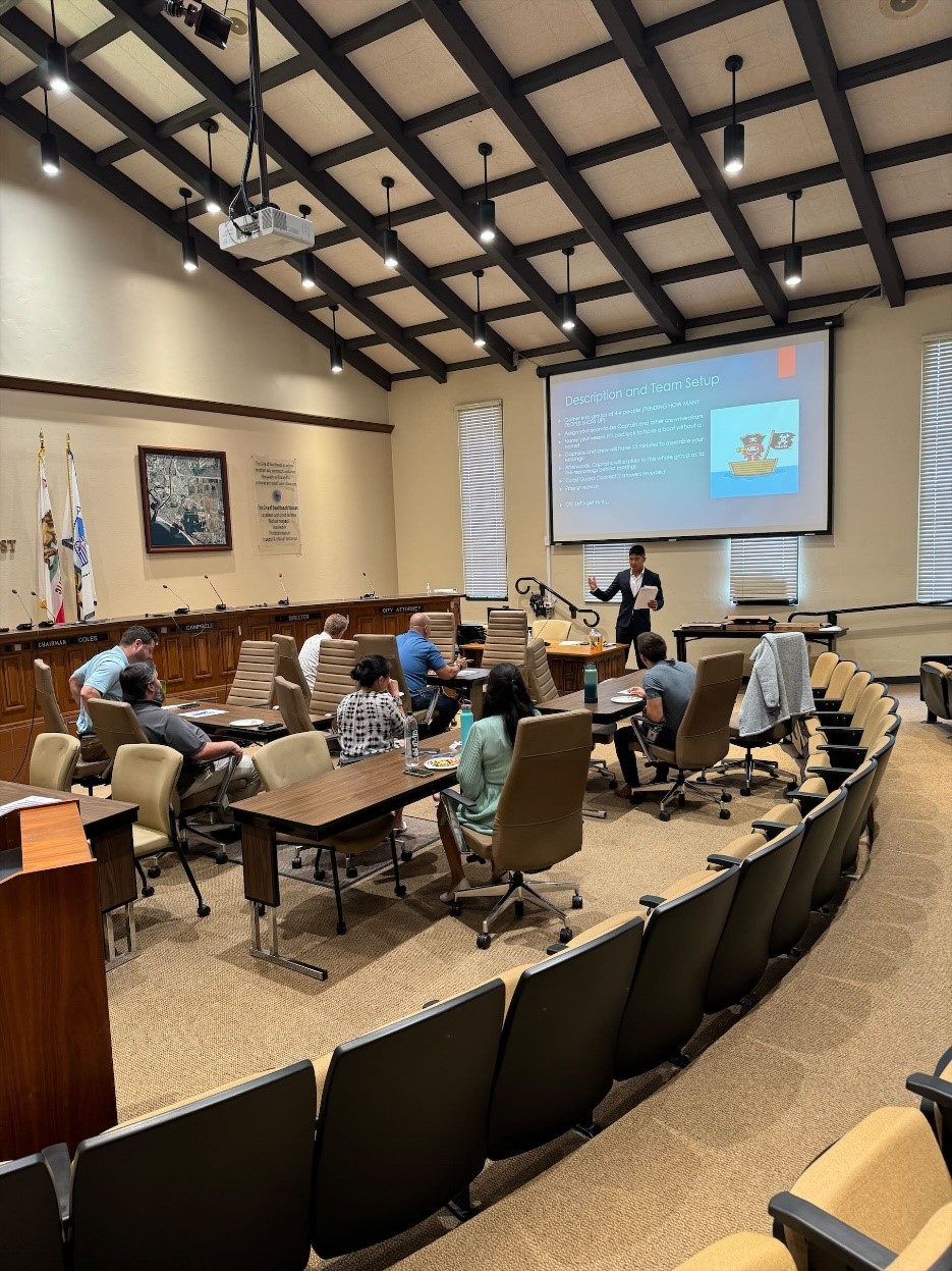On Thursday, August 8th, the Staff Engagement Team organized a Lunch and Learn Event, in Council Chambers, which was a great success. This event was hosted by Sean Low, Deputy Director of Public Works. It focused on teamwork, strategy, and critical thinking by splitting staff up into teams and creating a survival scenario. The goals of the Staff Engagement Team are to boost staff morale, promote health and wellness, develop inter/intra-departmental relations, get staff involved with the Seal Beach community, and to encourage professional development.