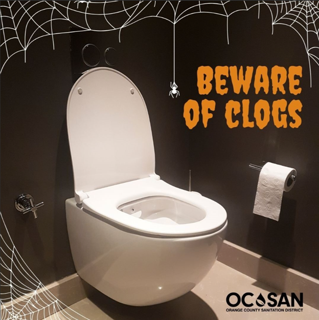 Don’t be tricked this Halloween! Disposable wipes – like baby wipes, cleaning wipes, or cosmetic wipes – can cause clogs in your home and wreak havoc in OC San’s collection and treatment system. Unlike toilet paper, wipes don’t break down in water and, instead, remain intact as they move throughout the sewer system. This can lead to damaging clogs in your home, or bigger issues for OC San’s regional sewer line and treatment plant.