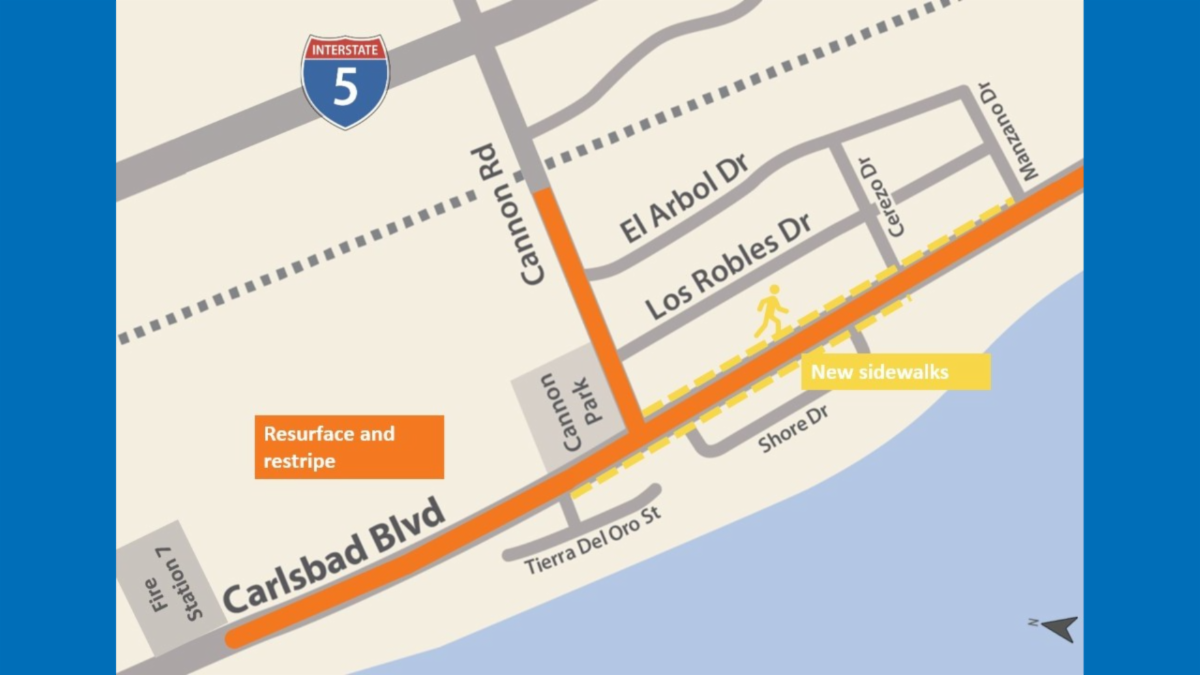 Monday’s Traffic Safety & Mobility Commission agenda includes a discussion on proposed street improvements for the Terramar area. Staff will share the results of a recent survey that nearly 350 people took to share feedback about the proposals to add new sidewalks on one or both sides of the street and to resurface and restripe Carlsbad Boulevard and Cannon Road in this area.