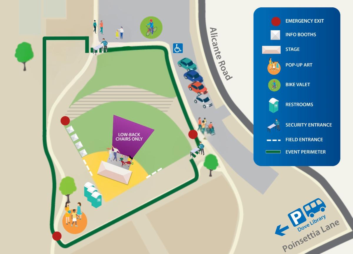 - Concertgoers can set up low-back chairs (which sit lower than 8 inches from the ground). Seating is limited, so please only take the space you need.