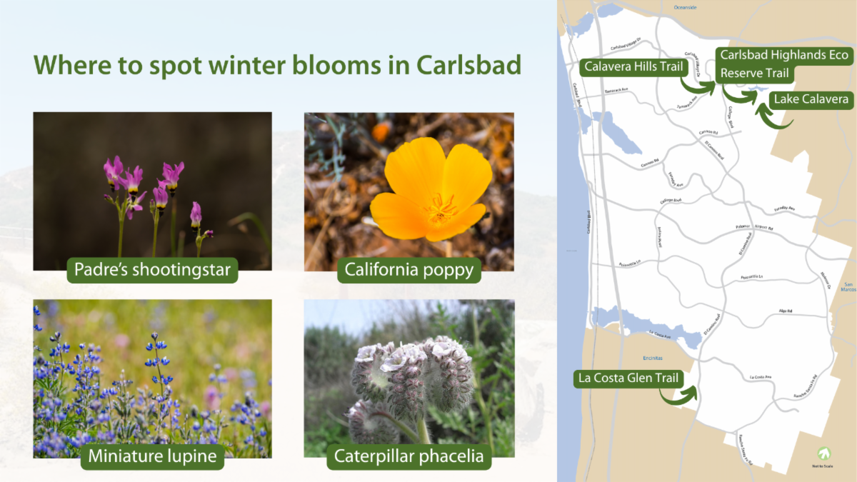 Some of the best winter and early spring views can be found along trails throughout Carlsbad, including: