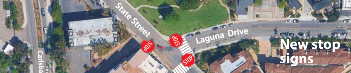 - New stop signs at State Street and Laguna Drive