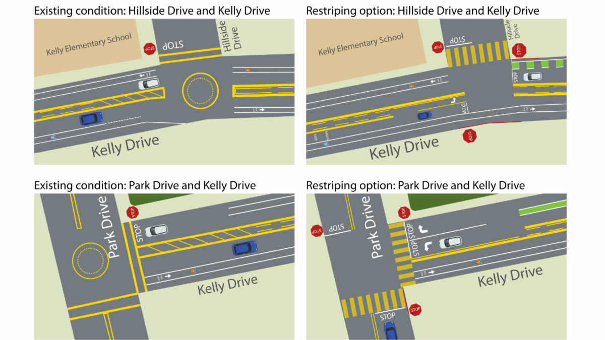 - Add all way stops on Kelly Drive at the intersections with Park Drive and Hillside Drive