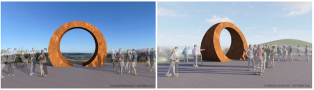 This week, the City Council approved the final public art design concept for Veterans Memorial Park. The piece, known as “The Ring,” was designed by artist Gordon Huether Studios and will be located on the park’s upper plateau overlooking the ocean, lagoon and golf course.