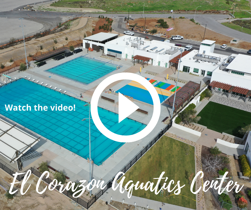 Work is wrapping up on the world-class El Corazon Aquatics Center, which will provide competition-level amenities to serve residents, school teams, and host regional meets. Main components include a 56-meter competition pool, diving boards, instructional pool, splash pad, meeting rooms, large multi-purpose hall for events, and viewing areas. The targeted soft opening date is August 2, 2021. View video. We can't wait to welcome you in! More info