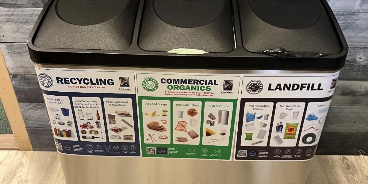 Businesses must offer a three-container collection system to separate organic waste, traditional recyclables, and items to be landfilled. This includes a green bin for food scraps and food-soiled papers, a blue bin for recycling (cans, bottles, paper, cardboard), and a gray bin for trash. Folsom businesses should begin providing three-bin systems wherever food waste is generated by employees or customers.