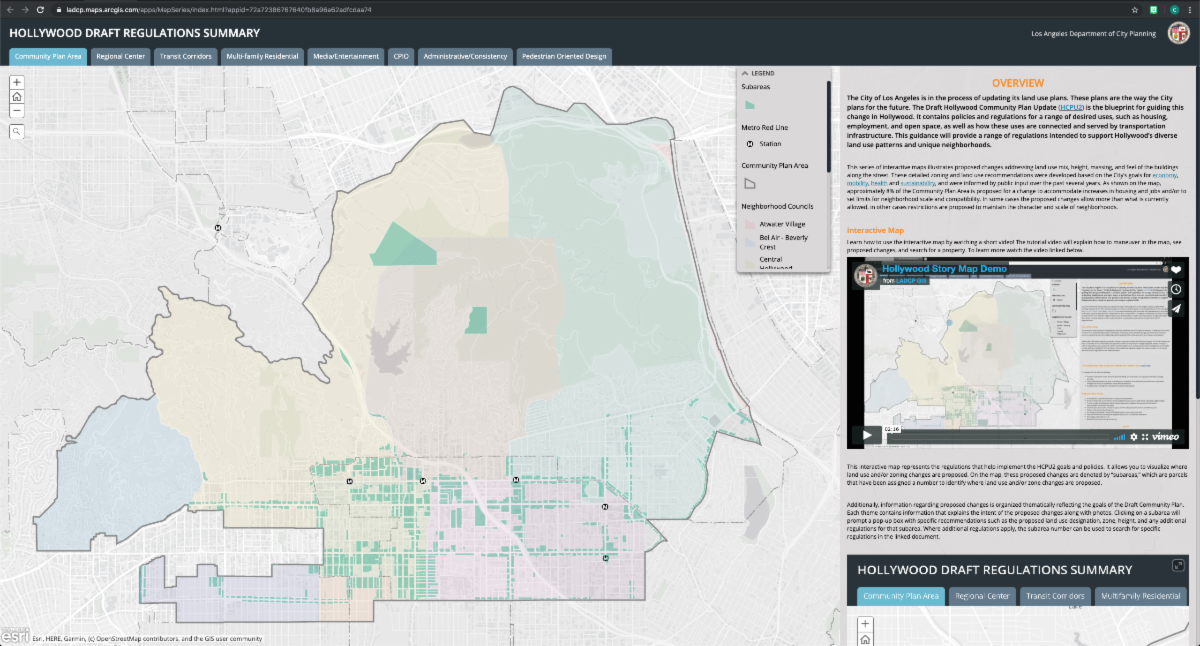 to access the story map for the Hollywood Community Plan update, which illustrates proposed land use changes using GIS technology.