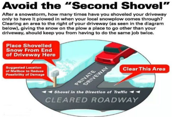 Blocked driveway? This is an unfortunate side effect of plowing the streets. Snow is plowed as near to the curbs as possible, and as a result, driveways can become blocked with wet, heavy snow. It’s the property owner’s responsibility to clear snow from the end of their driveway.