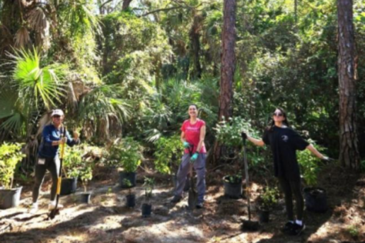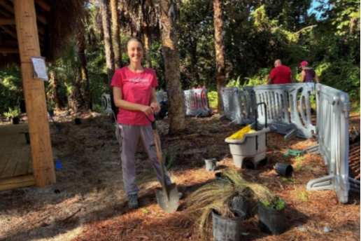 On October 28, the vision was completed when a team from the Explorium working with Woodly and Jean from the City’s maintenance team installed over 95 native plants including southern shield ferns, coontie, cocoplum, wild coffee, muhly grass and more! Make sure to stop by frequently and watch as the plants fill in the space, and stay tuned to City outreach to find out about events that will soon be offered in the Chickee hut!