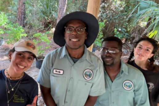 In our last newsletter, you saw the ongoing progress to clear weeds from around the Children’s Science Explorium’s new Chickee hut in preparation for planting a native landscape.