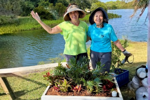 Thank you to Nancy and Daphna from Boca Raton Garden Club (BRGC) for refreshing the four planters on the Spanish River Library footbridge. In addition to fresh soil and mulch, new bromeliads were installed and a native coontie was replaced. The planters are a collaboration between BRGC and HABcenter nursery (who supplies the planting materials). These dedicated partners beautify the landscape for all those enjoying the trail around Spanish River Library and Pondhawk Natural Area. Check it out on your next visit and appreciate Nancy and Daphna’s green thumbs!