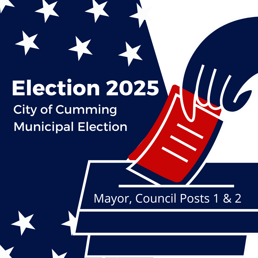 The City of Cumming Municipal Election is open only to City of Cumming Registered Voters (residing inside the Cumming City Limits). Voter Registration Deadline is Oct. 6th. To check your voter registration status, go to the Georgia Secretary of State's Website.