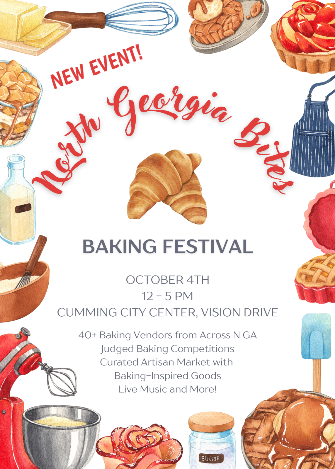 The Cumming City Center Market will present an ALL NEW event, North Georgia Bites Baking Festival, on Saturday, Oct. 4th from 12-5 p.m.!