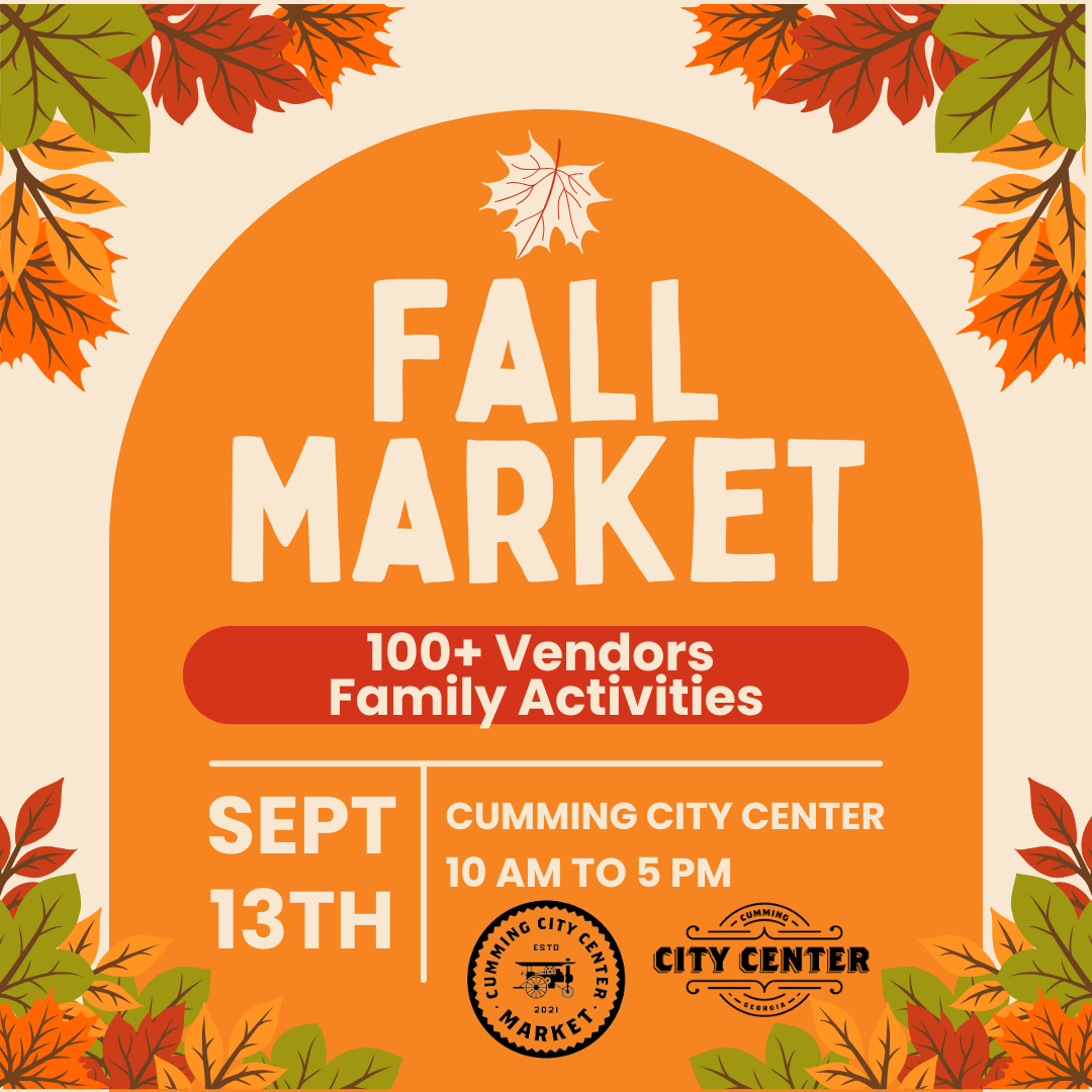 The Annual Cumming City Center Fall Market will take place on Saturday, Sept. 13th from 10 a.m. to 5 p.m.