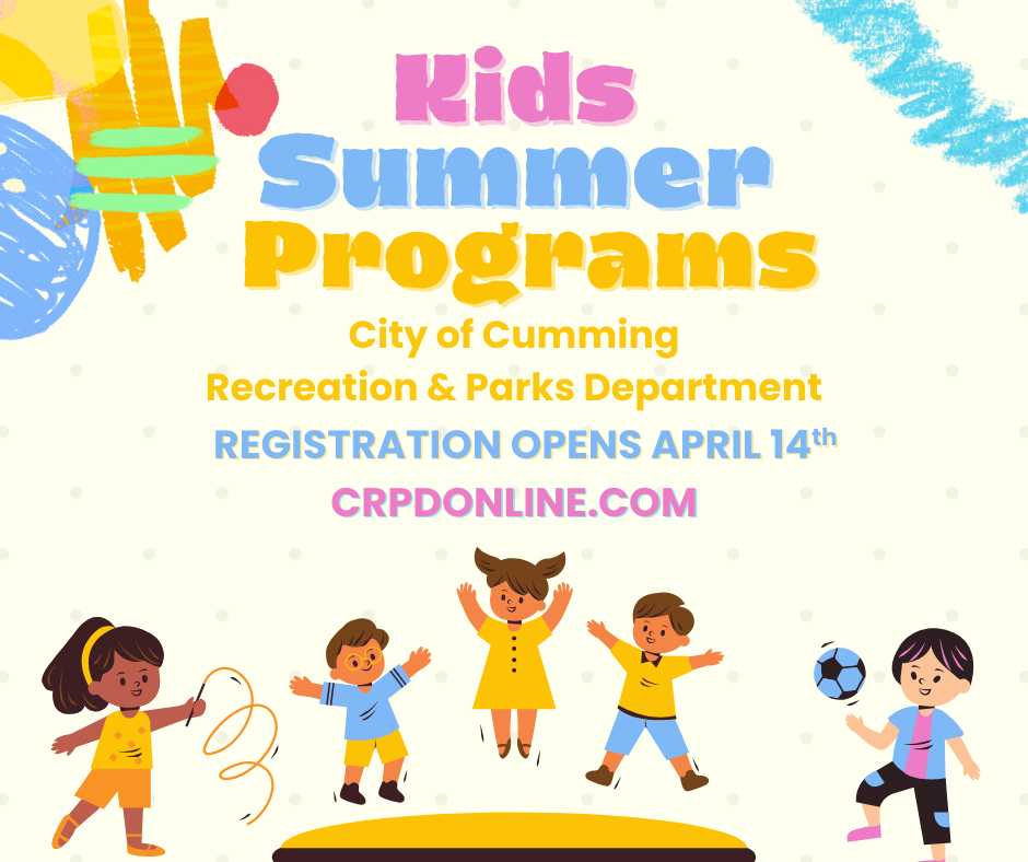 The Cumming Recreation & Parks Department will open registration for 2025 Summer Camps & Programs on Monday, April 14th. Click here for the 2025 Summer Program Guide.