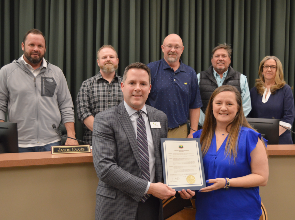 | | Mayor & City Council Raise Colorectal Cancer Awareness | | During their Regular Meeting on March 18th, Mayor Troy Brumbalow and City Council presented a proclamation recognizing March as Colorectal Cancer Awareness Month. Jason W. Miller, Chief Operating Officer for GI North, and Kim Jette, a stage IV colorectal cancer survivor and GI North patient, accepted the proclamation. Jette and her family recently attended Fight Colorectal Cancer's annual advocacy day, "Call on Congress," to speak with members of Congress about setting aside funding within the Department of Defense's Congressionally Directed Medical Research Program to create a Colorectal Cancer Research Program.