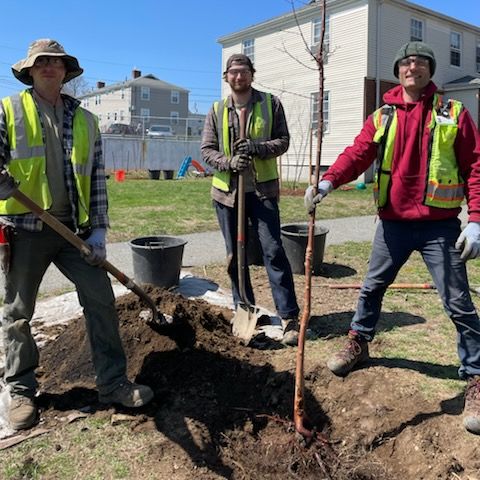 To kick off the planting season, this project added 70 trees to open spaces at Everett Housing Authority (EHA) properties. DCR staff, along with the City of Everett’s Tree Warden Jacob St. Louis, planted trees that will eventually provide natural shade and environmental benefits in an urban community like Everett.