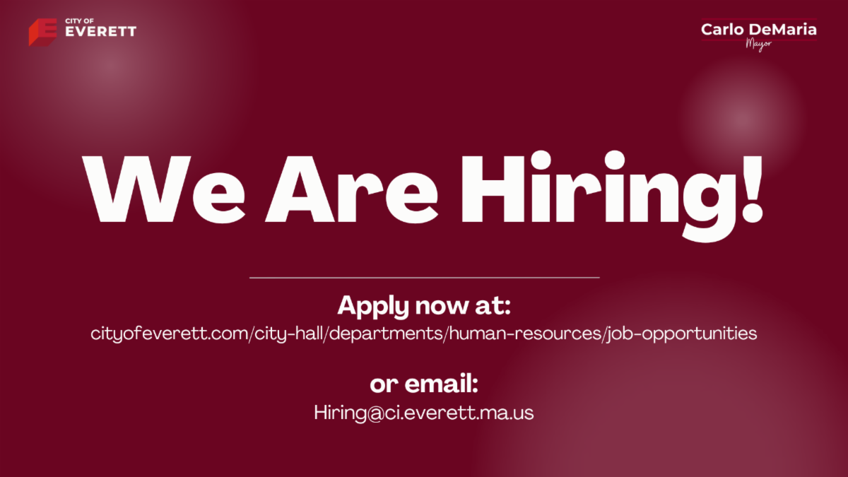 | | Stay up to date on what is happening at the Everett Public Libraries with the monthly EPL Newsletter! Read it on the website or sign up to get it delivered straight to your inbox! | | The City of Everett is hiring for a variety of positions in different departments! Apply now by clicking the button below. For more information, please email Hiring@ci.everett.ma.us. | | Inspectional Services Department | | The Inspectional Services Department (ISD) seeks to protect the health, welfare, and safety of the residents and visitors of Everett. This includes ensuring buildings are safe and habitable, in addition to being constructed safely. Check out the above before and after photos of a project the team helped oversee. | | City of Everett and DCR Team Up to Plant Trees at Housing Authority Properties | | |