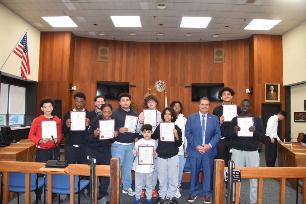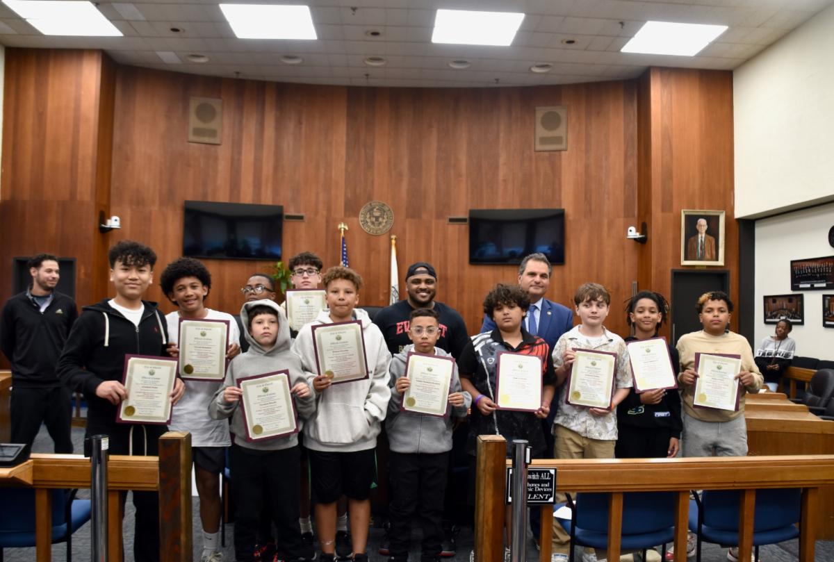 Mayor Carlo DeMaria congratulated the Recreation Center’s fifth, sixth, and eighth grade youth travel basketball teams on winning State championships at City Hall.