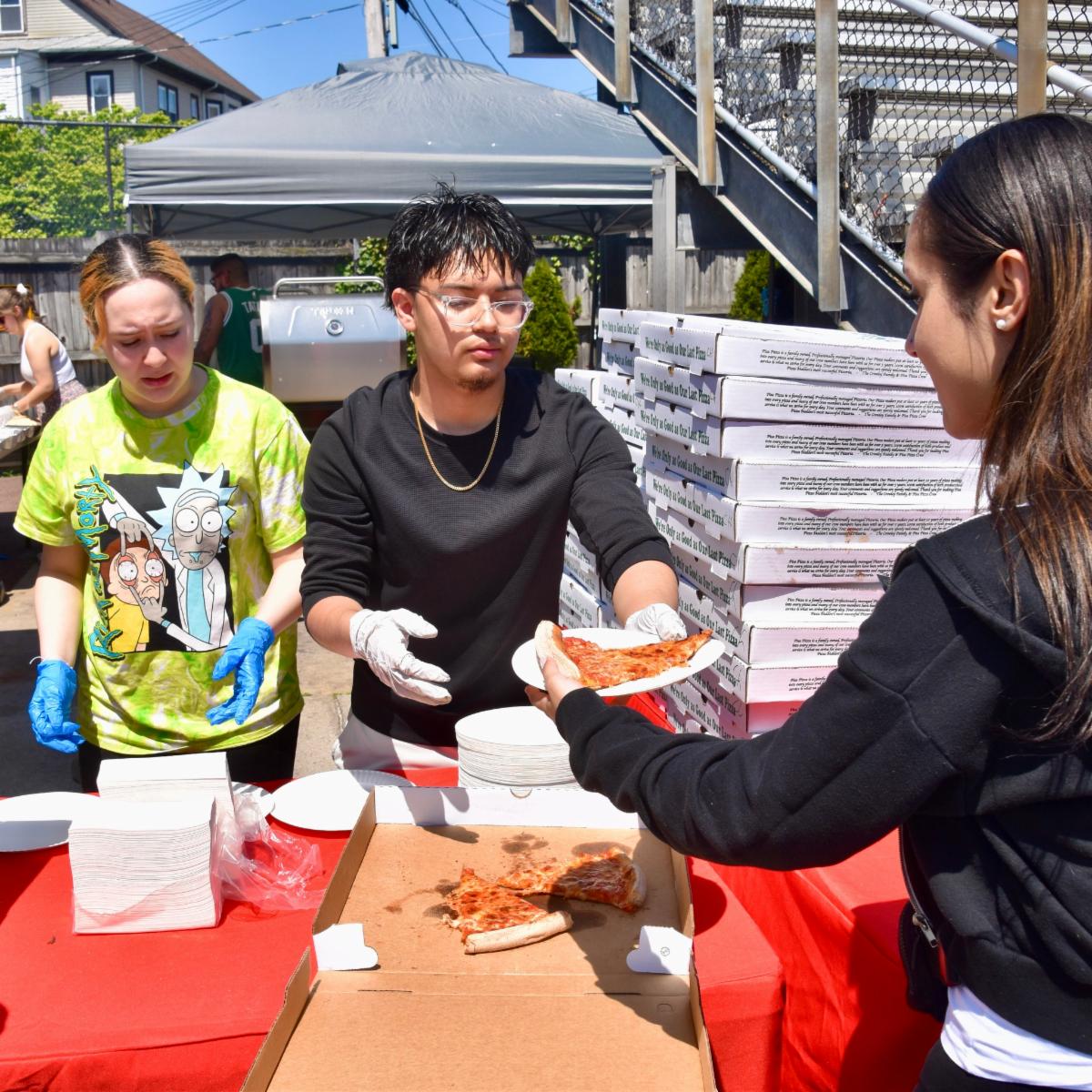 Mayor Carlo DeMaria, along with the Youth Development and Enrichment Department, Diversity, Equity, and Inclusion Department, and volunteers from the Key Club, had a fantastic time at the Everett High School graduation rehearsal serving food to graduating students. Students had the opportunity to enjoy hamburgers, hot dogs, pizza, and slush after the rehearsal was finished.