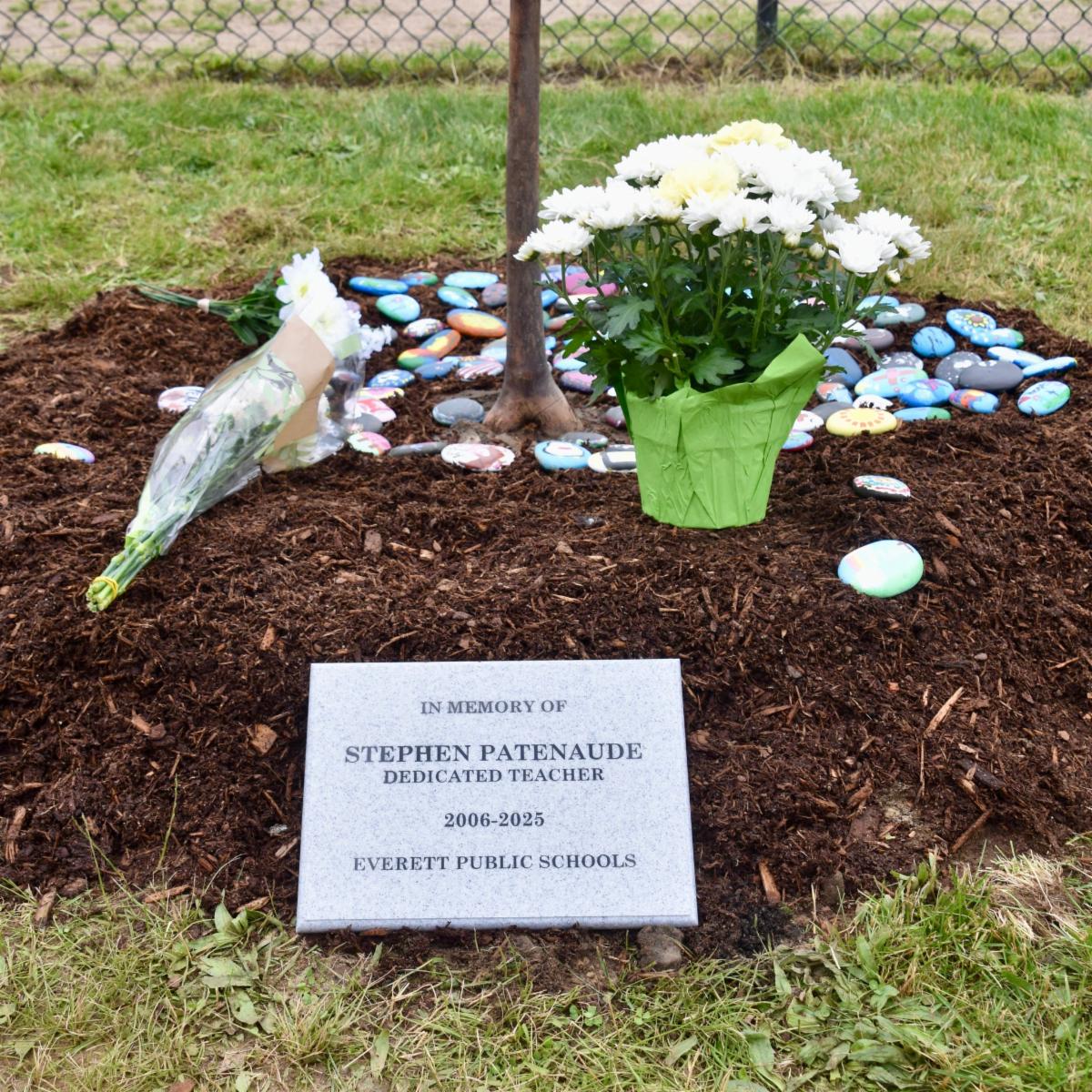 In honor of his memory, the Department of Conservation and Recreation (DCR) donated and planted the new paperbark maple tree. Not only will the tree provide shade during the summer heat, it will also serve as a reminder of what a wonderful teacher, colleague, and friend Mr. Patenaude was to so many in the Lafayette School. Additionally, all grade 5 students painted memory rocks and placed them around the new tree to individually pay tribute to him.
