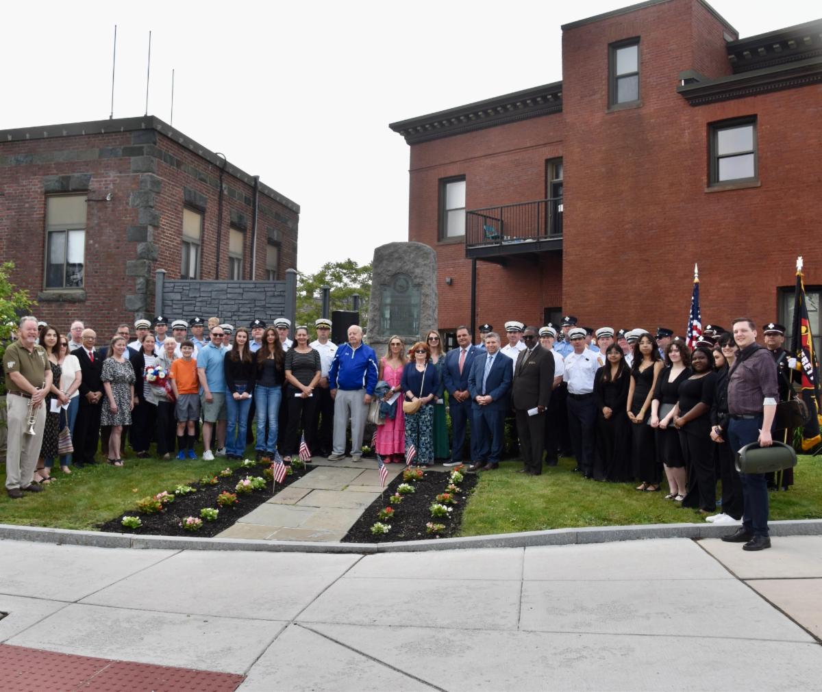 Chief Paul Strong was pleased to be joined by Bishop Robert Brown, Mayor Carlo DeMaria, Senator Sal DiDomenico, and State Rep. Joe McGonagle, alongside the Everett High School (EHS) Choir, other elected officials, members of the EPD, and residents to pay tribute to Everett police officers who are no longer with us. Following their remarks, wreaths were placed at the memorial located outside of the Everett police station and the names of the officers who were killed in the line of duty and the officers who served and passed away in the past year were read in recognition of their service.