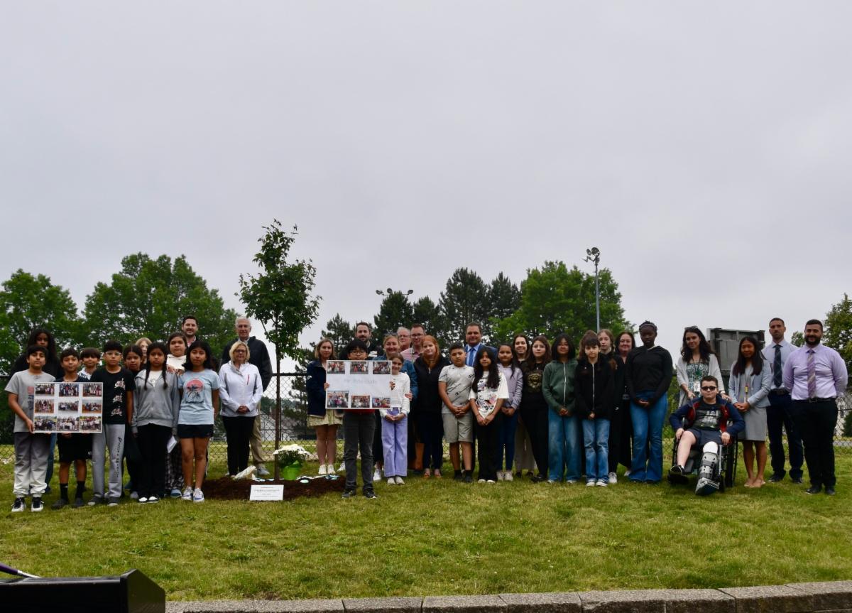 Mayor Carlo DeMaria recently joined alongside students in grade 5, teachers, faculty, and elected officials, as well as the family of Stephen Patenaude, at the Lafayette School to dedicate a newly planted tree in honor of Mr. Patenaude.