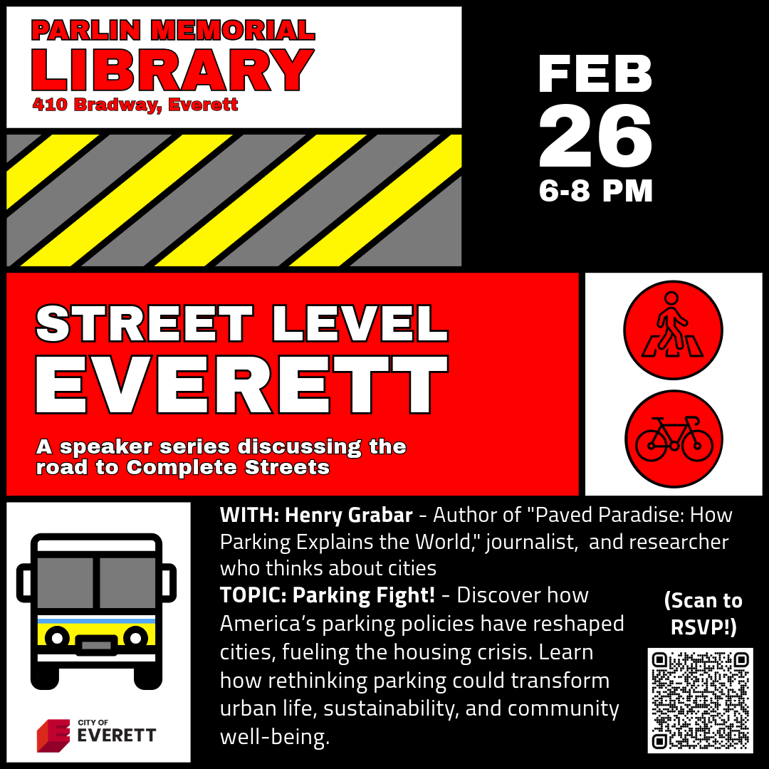 Mark your calendars for this quarter’s installment of Street Level Everett! What’s Street Level Everett? It’s a quarterly speaker series hosted by the City of Everett to dive into how to make our streets safer and more vibrant for everyone.