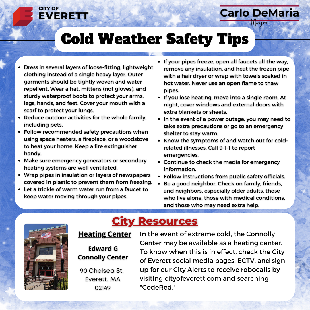 Winter in New England brings with it the chance for below average temperatures, and it's important to take the proper safety precautions to stay safe and warm. Take some time to review these cold weather safety tips: