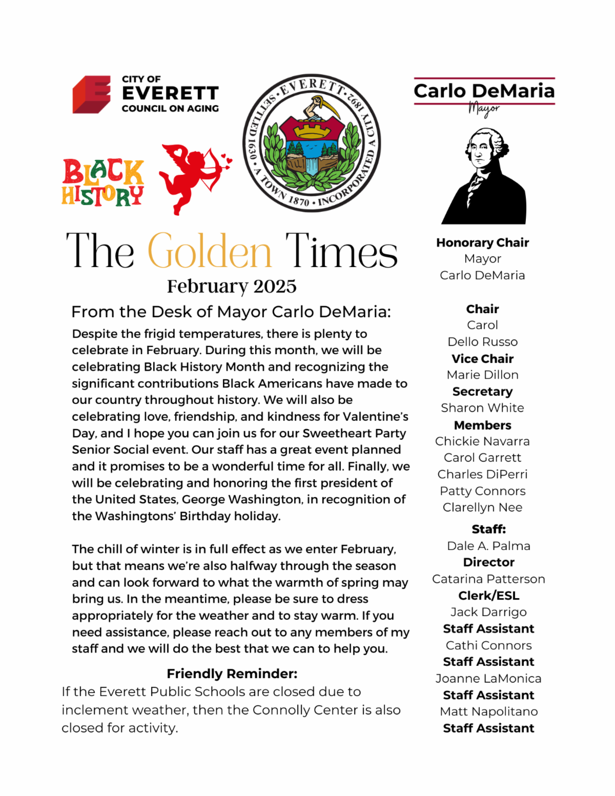 Happy New Year, Everett! I hope you all were able to enjoy the holiday season with friends, family, and loved ones. I'm so glad that we were able to celebrate the season with our annual Christmas Tree Lighting and Menorah Lighting events this past December, which I hope you were able to attend with us. It's always wonderful to see our community come together, especially during the holiday season.