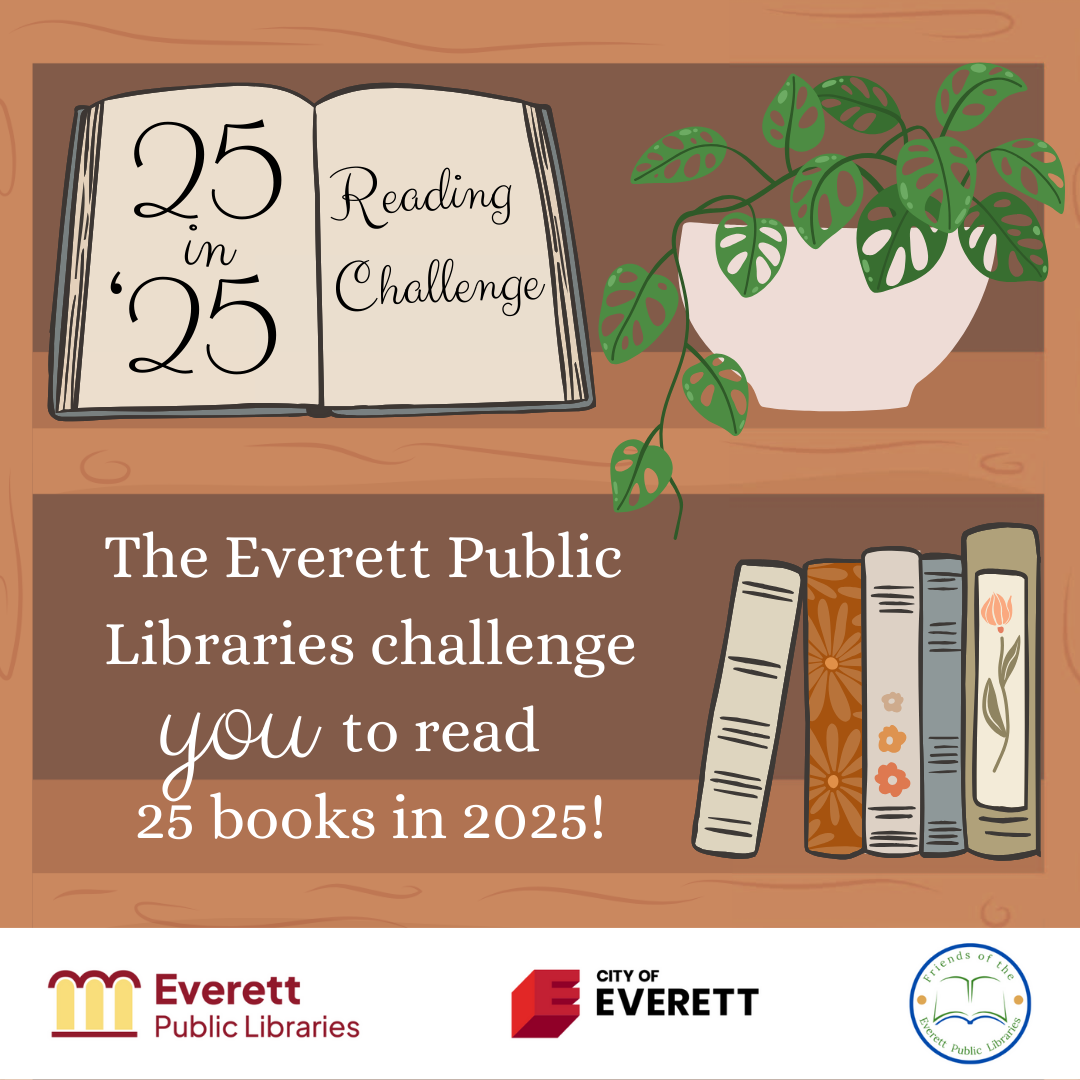 Visit everett.beanstack.com, or go to the Parlin or Shute Memorial Libraries to get started on the 25 in '25 Challenge today! Prizes provided by the Friends of the Everett Public Libraries will be awarded to those who finish the challenge. | |