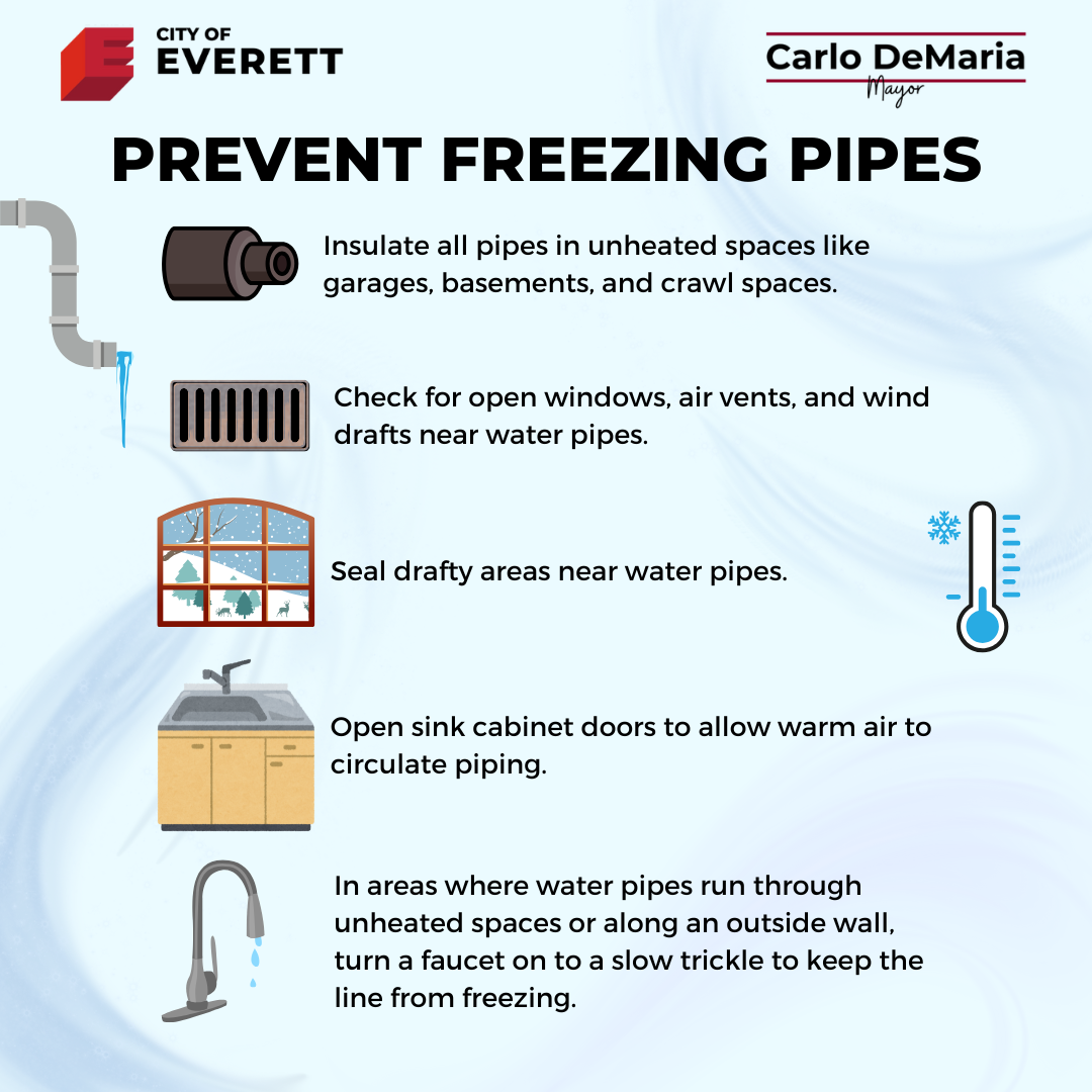 Prevent Your Pipes from Freezing! When temperatures drop, water pipes in your home are much more susceptible to freezing. To help prevent your pipes from freezing, please consider taking the following precautions: