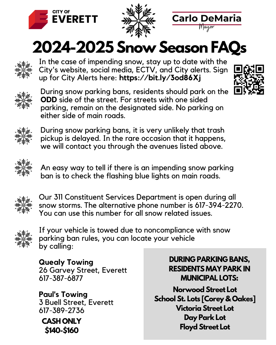 With winter in full swing, please be sure to check in on your neighbors. As we all know, temperatures can drop really low this time of year making it dangerous for our most vulnerable residents. In the event of a significant snow event and the decision is made to declare a snow parking ban, please note that parking will only be allowed on the odd side of the street where normally two-sided parking is allowed this year.