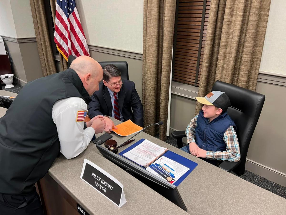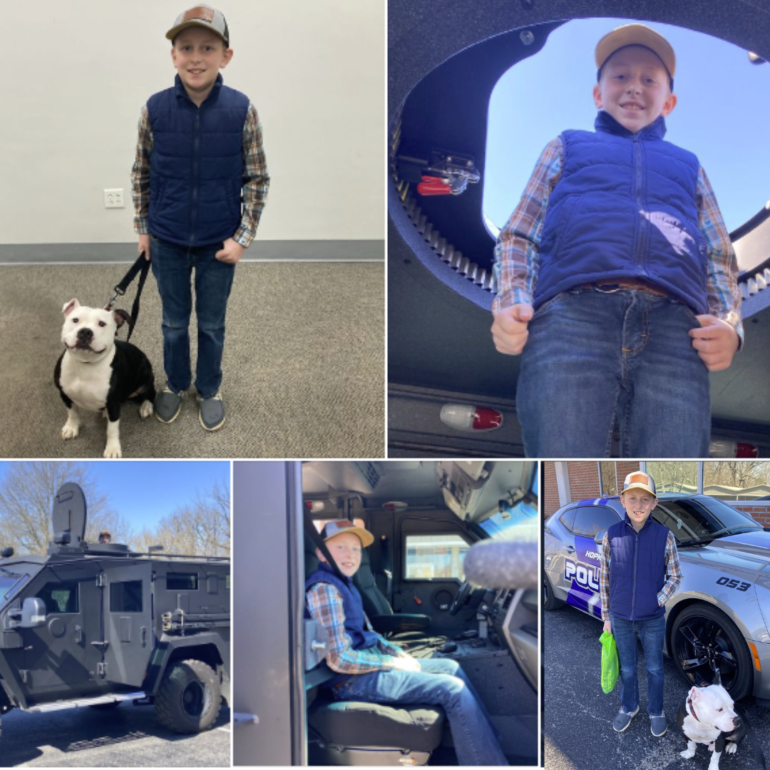 During his tenure as "Mayor for a Day", Riley Knight had a great time exploring the police department. He was able to take a ride in the BearCat, the Camaro, and ride along with the police department's side