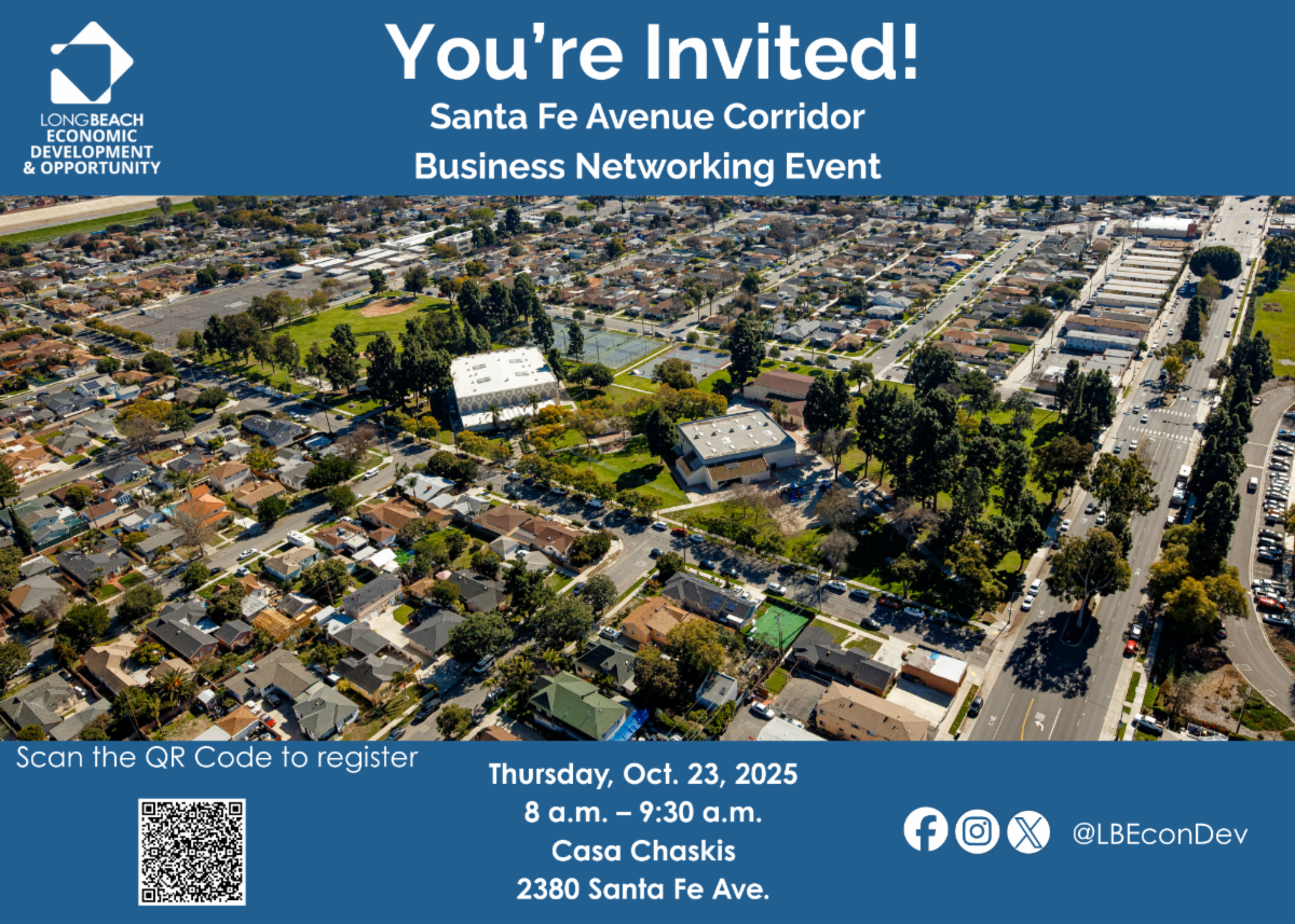 El Departamento de Desarrollo Económico y Oportunidades (EDO) de la ciudad de Long Beach está estudiando la viabilidad de crear una asociación empresarial en West Long Beach e invita a los empresarios y partes interesadas a participar y conocer la iniciativa. El evento está programado para el jueves 23 de octubre de 2025, de 8 a 9:30 a. m., en Casa Chaskis (2380 Santa Fe Ave.).