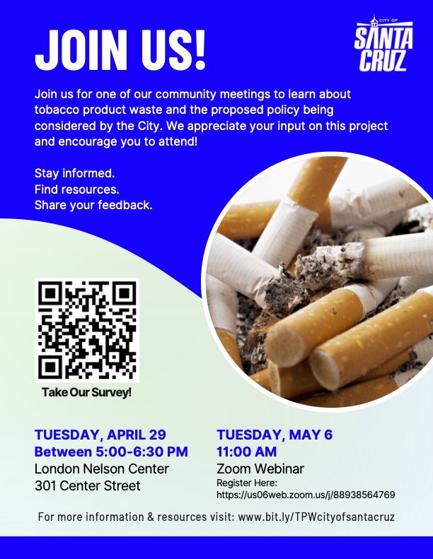Join the City of Santa Cruz for an interactive Open House on Wednesday, May 1, from 5:30 – 7:30 p.m. at the London Nelson Community Center!