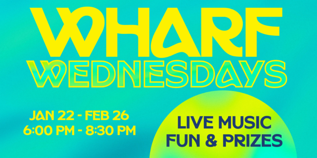 Continuing February 19 – 26, Wharf Wednesdays is a concert series with a different performer each week, created to support Wharf businesses after the winter storm event and temporary closure of the Wharf in December.