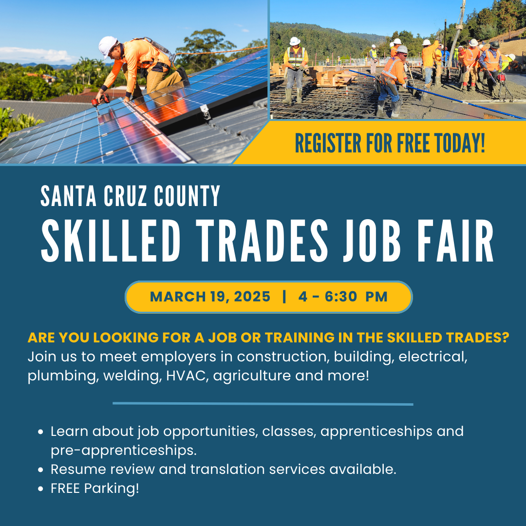 Are you looking for a job or training in the skilled trades? Attend the Santa Cruz County Skilled Trades Job Fair on March 19!