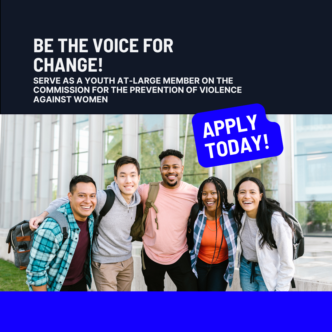 The Commission on the Prevention of Violence Against Women (CPVAW) is looking for a passionate and motivated non-voting Youth member to join the Commission! This is a unique opportunity for a high school student to serve as a bridge between youth and the Commission, ensuring youth voices are heard in local government decision-making.