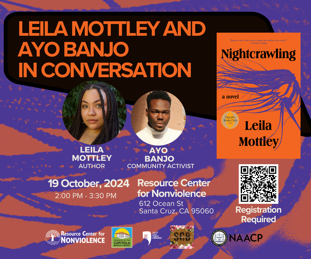 Santa Cruz Public Libraries invites the community to join this powerful conversation with Leila Mottley, best-selling author of the novel Nightcrawling, and community activist Ayo Banjo at the Resource Center for Nonviolence on Saturday, October 19, at 2:00 PM.