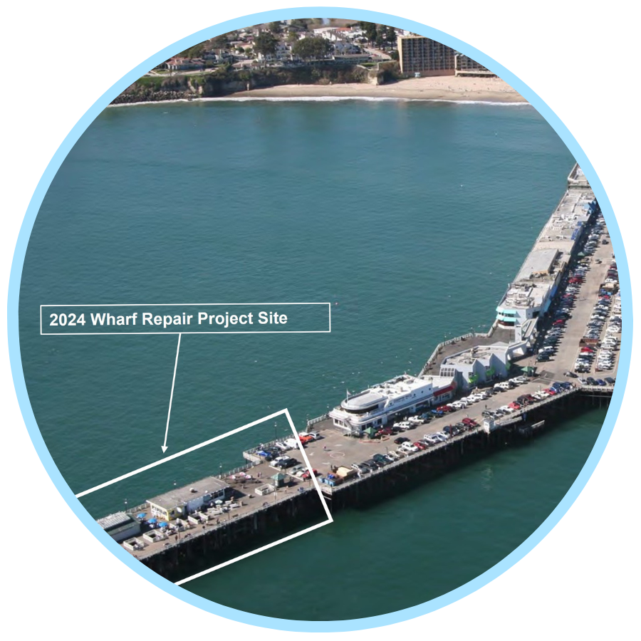 These efforts will address the existing damage and enhance the wharf's structural integrity. For questions, please contact Norm Daly at (831) 420-5270 or ndaly@santacruzca.gov.